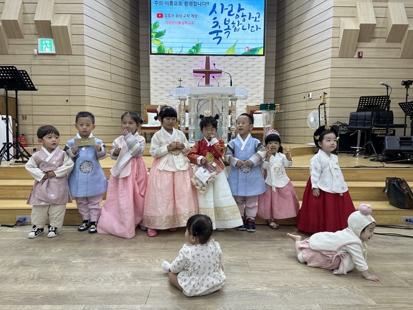 2025년 추석의 아이들 [2025.10.5] 페이지 정보 작성자 최고관리자 작성일25-10-06 16:38 조회353회 댓글0건 관련링크 이전글 다음글 목록 답변 글쓰기 본문 우리의 귀한 아이들(4가정 13명)이 추석명절을 맞이해어여쁜 한복을 입고 예배에 참석한 후사랑스러운 기념사진을 남겼습니다.평생을 하나님의 날개안에서 안전하게 하나님과 동행하는 인생 되길 기도합니다. 댓글목록 등록된 댓글이 없습니다. 이전글 다음글 목록 답변 글쓰기