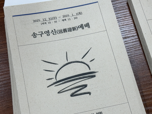 2026 송구영신예배 페이지 정보 작성자 최고관리자 작성일26-01-05 08:25 조회196회 댓글0건 관련링크 이전글 다음글 목록 답변 글쓰기 본문 한해의 마지막과 첫 시작은 예배로 함께 합니다.2026년 한해도 실수가 없으신 완전하신 하나님과 함께 동행하시길 기도합니다. 댓글목록 등록된 댓글이 없습니다. 이전글 다음글 목록 답변 글쓰기